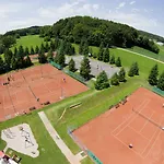 Otočecにある宿泊の客室にはカ-ペットを敷いた床も備わっています. また,一部の客室からは公園の景色を眺めることができます.